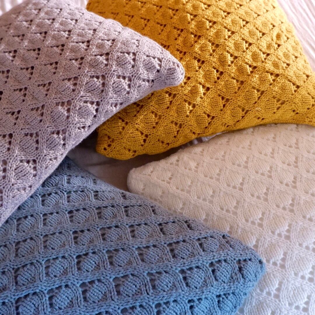 手編みのような編み目と、やわらかな風合いが特徴のニットクッションカバー